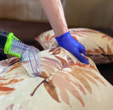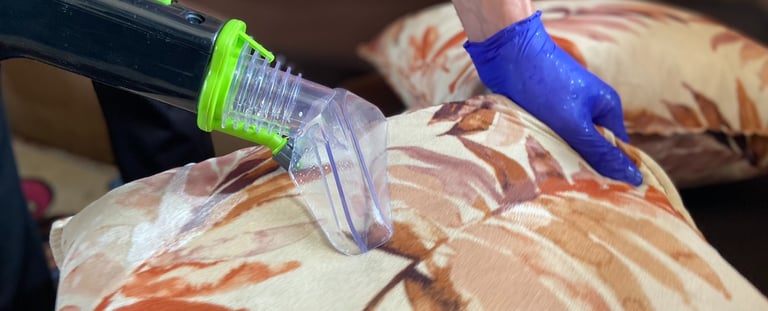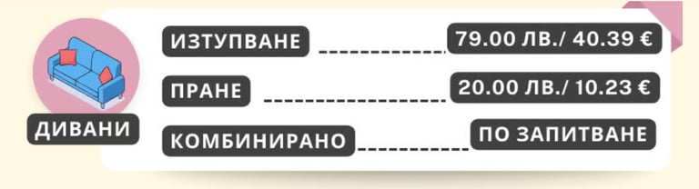 Дълбоко изтупване на меки мебели до 40 см в дълбочина, при което се отстраняват прах, акари, мъртва кожа, косми и други алергени.